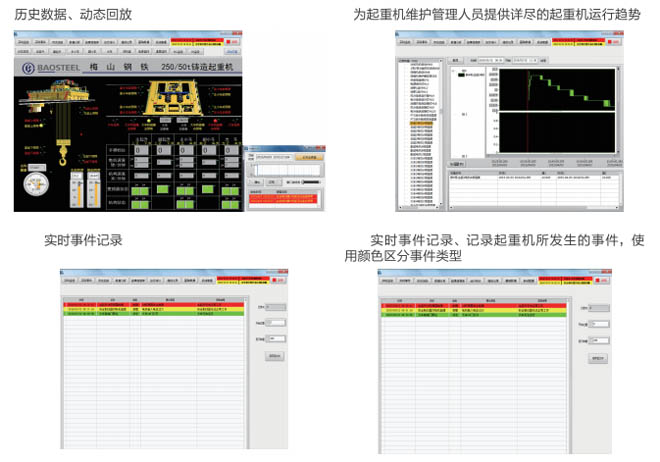 •- 通過起重機(jī)安全監(jiān)控管理系統(tǒng),運(yùn)行管理人員可以通過系統(tǒng)對起重機(jī)運(yùn)行中出現(xiàn)的故障進(jìn)行 查詢和處理;對設(shè)備及元器件進(jìn)行系統(tǒng)管理;指導(dǎo)定期對系統(tǒng)進(jìn)行維修和調(diào)試。系統(tǒng)具備以 下功能:實時狀態(tài)顯示、實時報警顯示、歷史記錄查詢、部件壽命監(jiān)測、事故診斷分析、數(shù) 據(jù)統(tǒng)計及權(quán)限設(shè)定管理等。